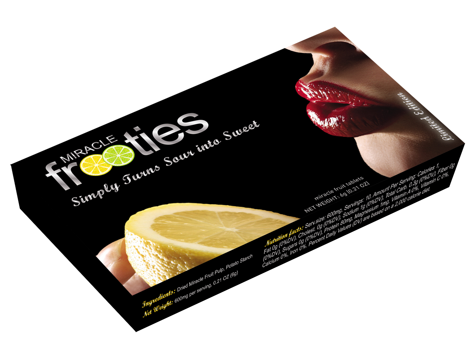 LIMITED EDITION GIFT BOX! Large Miracle Fruit Tablets (600 mg) - our special Limited Edition gift box! Each tablet can be easily split in half for two servings - perfect for sharing with a friend. Each factory-sealed pack contains 10 large size Miracle Frooties.