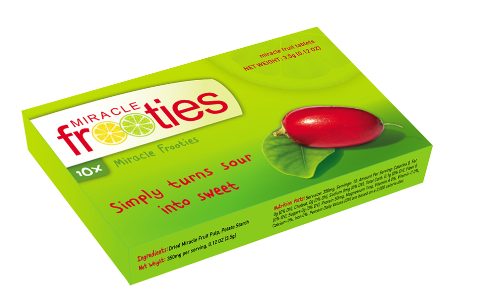 Miracle Frooties = Miracle fruit berries in freeze-dried form, compressed to Frooties for easier usage.